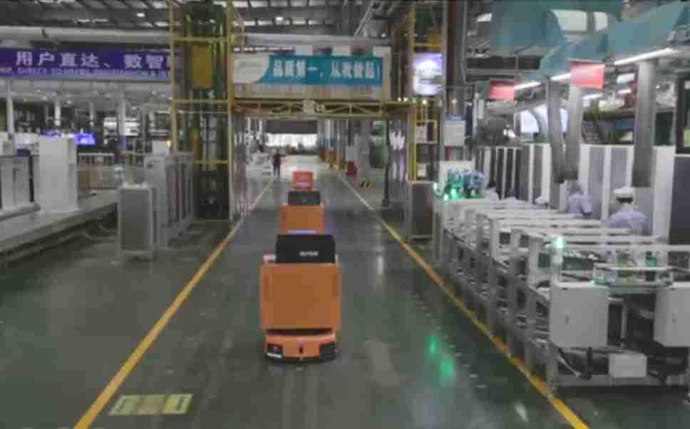 为车载冰箱物流配送打造的智能解决方案,,,包含产中物流通过潜伏举升AMR搬运至线边,,产后成品物流智能仓储,,,流程包含产中物流智能齐套入库,,线边安灯叫料AMR智能配送至线边,,,成品入库、、、出库,,,,通过无人堆高车机器人,,,智能仓储管理替代人工作业管理,,,实现更高存储、、、更高效率、、、、更具柔性化的解决方案。。。